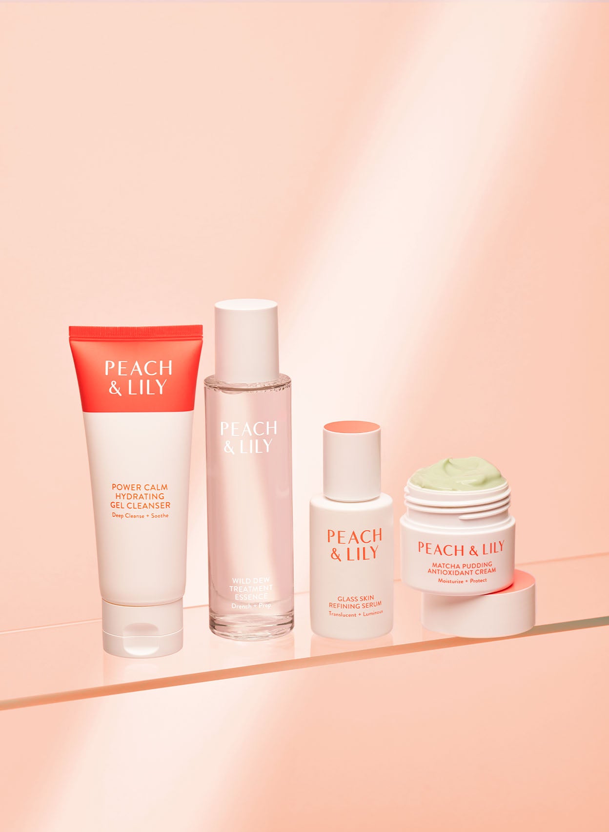 A full skincare routine kit with four iconic must-haves for calm, smooth, hydrated, and radiant glass skin. This skincare regimen kit includes a full-size Power Calm Hydrating Cleanser, Wild Dew Treatment Essence, our #1 bestselling Glass Skin Refining Serum, and Matcha Pudding to gently cleanse, deeply hydrate, and nourish. With this routine, skin looks clear, smooth, and luminous.